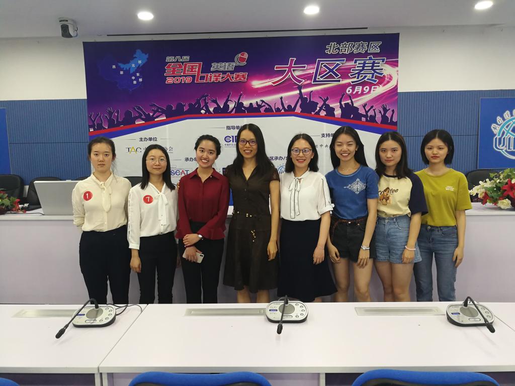 2019年6月9日,第八届全国口译大赛北部大区赛在对外经济贸易大学落下帷幕。yl6809永利员工在大赛中表现优异。其中,金羽菲同学获一等奖,潘婷立、尹佩璇、侯玉颖同学获二等奖,谢怡凡同学获三等奖,赵世明同学获优秀奖,王颖冲老师获优秀指导教师奖。